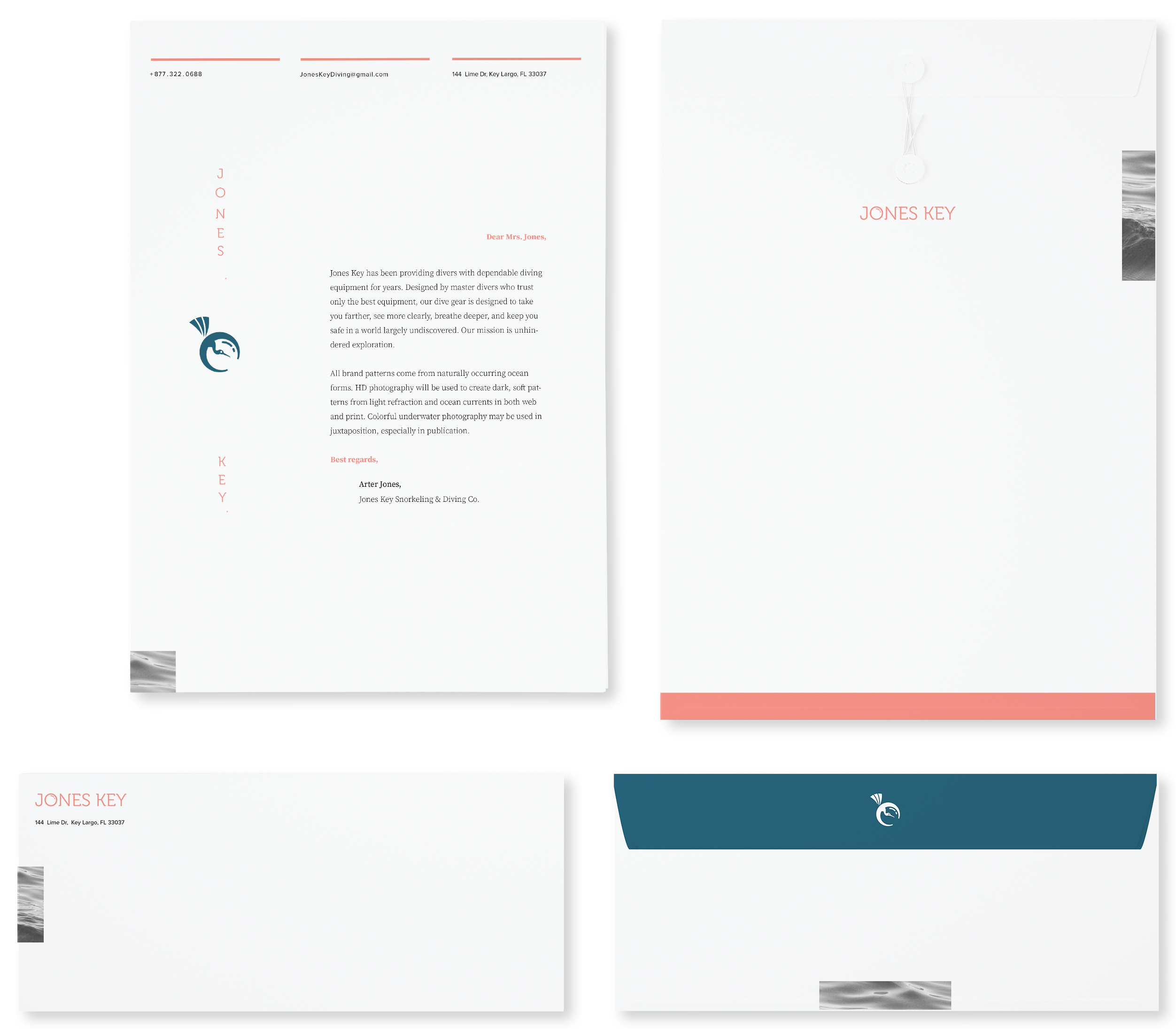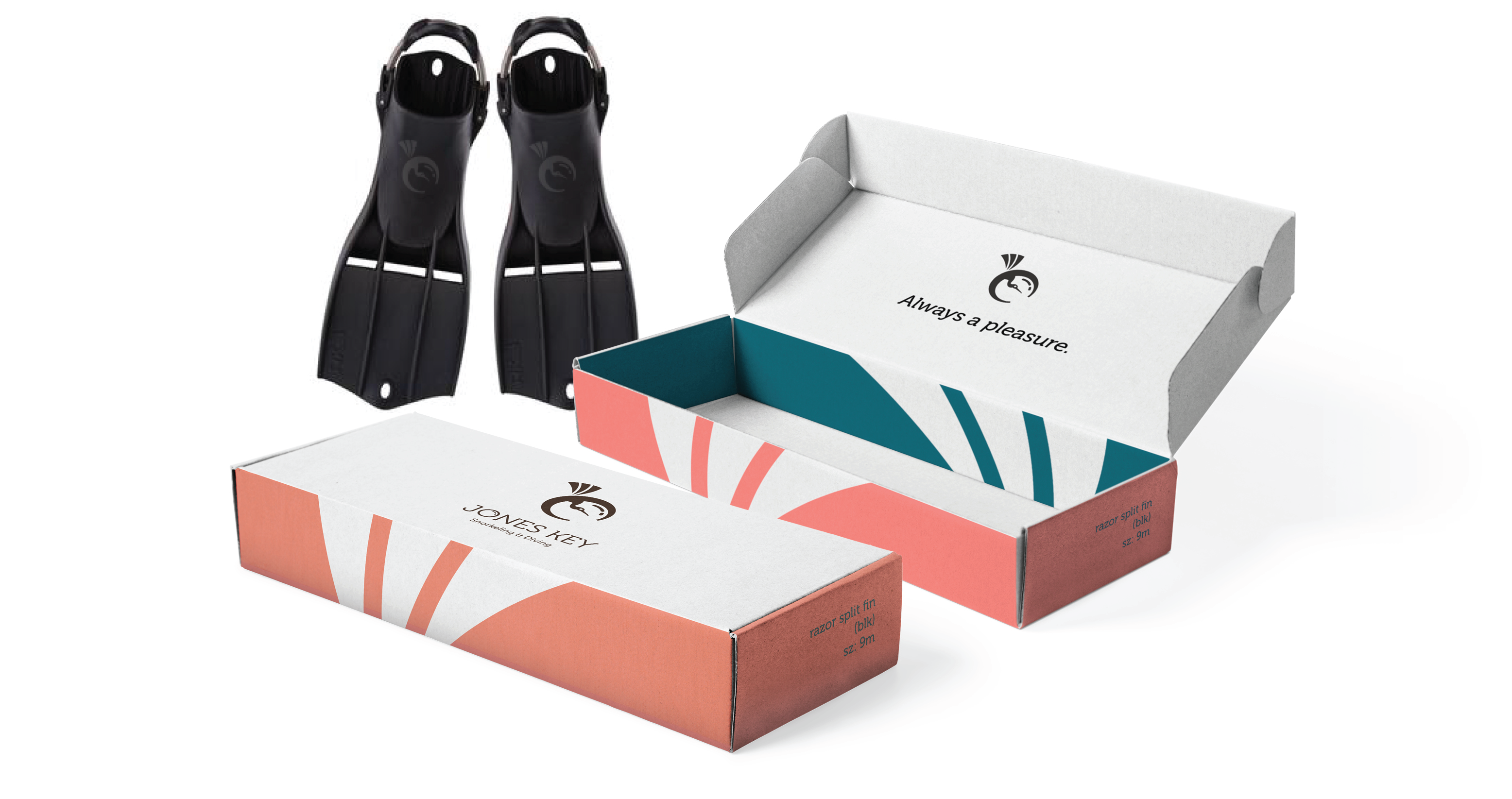 Jones Key Snorkeling and Diving is a seller and manufacturer of premium dive equipment. The Jones Key logomark comes from the ocean cormorant, a diving bird, which represents both the preparedness and the foreignness of divers in the water. The Jones Key motto is “limitless exploration.”